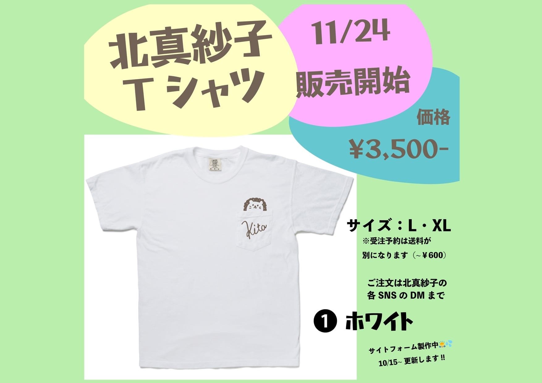 シンガーソングライター北真紗子初のオリジナルTシャツ!!11/24 北真紗子BIRTHDAY ONE-MANに合わせて受注生産を行います!!